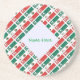 Round cork‑backed coaster with a tiled Mexican flag pattern covering the full printable area. One side features a white fractal squiggly‑square patch with your custom name in green text. Perfect for Mexico family reunions, Cinco de Mayo, Mexican Independence Day Sept 16, cultural pride, and everyday home use.