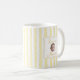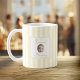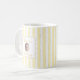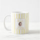 Celebrate her new role as mom with this charming personalized coffee mug featuring a baby name and "Mommy" title in a delicate framed design. The yellow vertical stripes create a fresh, modern look perfect for morning coffee or tea. A thoughtful gift for new moms on Mother's Day, baby showers, or hospital visits.