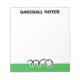 Personalized notepad with quirky baseball design. Custom memo writing note pad for men, women and kids. Cute school and office supplies with sports illustration. Handy for coach, player, fan, teacherm kids etc.