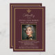 Personalized old money burgundy funeral invitation with photo and service details. Editable in the Zazzle editor.