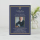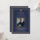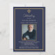 Personalized old money navy blue funeral invitation with photo and service details. Editable in the Zazzle editor.
