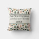 Celebrate the magic of your first Christmas together with this beautifully personalized holiday pillow. Featuring a cozy woodland tree pattern and elegant typography, this design creates a timeless keepsake for couples celebrating a special milestone.