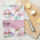 Elevate your kitchen décor with this highly functional and personalized tea towel! It features the delightful all-over watercolor pattern of pastel pink and mint cupcakes and baking tools on a crisp checkered backdrop. The generous size and absorbent material make it perfect for everyday kitchen tasks. Customize this beautiful design with your family name or "Mama's Kitchen" for a thoughtful hostess or housewarming gift. Displaying this towel coordinates perfectly with the Mommy & Me apron collection, adding a charming, cohesive, and professional touch to any home kitchen.