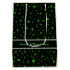 Personalized Pattern of green shamrocks with light green pearls on Black background symbolizing luck, harmony, and Irish spirit.