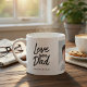Create a meaningful and heartfelt gift for Dad with this personalized photo mug. Featuring a modern handwritten “Love You Dad” design, this custom coffee mug allows you to add your favorite photo and children’s names for a truly one-of-a-kind keepsake.