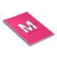 Personalized Elegant Modern Magenta Hot Pink Script Name Initial Monogram Spiral Notebook. This fun and vibrant notebook features a bold magenta hot pink background with a clean white initial, paired with your name in smooth black script for a striking, modern look. Below the initial, the full first and last name appears in a sleek font, creating a polished and eye-catching design.