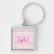 Personalized Pink Plaid Fyrkantig Silverfärgad Nyckelring
