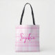 Personalized Pink Plaid Name Tote Bag Tygkasse