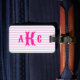 A cute preppy pink monogram striped custom luggage tag. Easy to customize. Makes a great gift for friends, family, bridesmaids, coworkers, college students, travelers, and more.