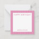 Personalized stationery enclosure notecard with a green gingham pattern in notes of dark deep and vibrant rose pink and bubble gum pink with the sentimental words "HAPPY BIRTHDAY". Tuck it into a flower bouquet or meaningful gift. These minimal flower shop inspired enclosure cards bring a retro kitchen vibe to your most thoughtful moments.
