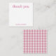 Personalized stationery enclosure notecard with a pink gingham pattern in notes of dark deep and vibrant rose pink bubble gum and white with the sentimental words "thank you". Tuck it into a flower bouquet or meaningful gift. These minimal flower shop inspired enclosure cards bring a retro kitchen vibe to your most thoughtful moments.