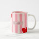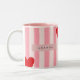 Personalized Playful Red Heart & Pink Stripe Två-Tonad Mugg