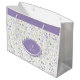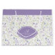Present your gifts with elegance using this personalized floral gift bag. Featuring a soft botanical pattern in calming lavender and green tones, this bag brings timeless charm and refined beauty to any occasion. The coordinating lavender band and classic medallion highlight a personalized initial and name, adding a thoughtful custom touch that makes every gift feel extra special. Perfect for birthdays, showers, weddings, holidays, or any celebration, this sturdy gift bag combines practicality with graceful design for a beautiful presentation.