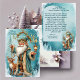 A personalized letter for a kid, grandkid from Santa who is assisted by his friend reindeer from North Pole. The tone is very warm and pleased in contrast to the hail and snow from winter wonderland. The illustration has a blue setting with snow, Santa and reindeer. Reverse side has a matching design. The text can be personalized with Zazzle's tools by clicking personalize button.