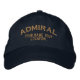 A personalized nautical Admiral embroidery design on a fine casual embroidered baseball cap. A one of a kind fashion statement sure to make an impression on, or off the boat.