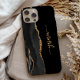 Personalize this elegant modern design with your name in vertical gold-colored signature handwriting script on a black background with a border of black watercolor agate trimmed with gold faux glitter. (To keep the swashes at the beginning and end of the name, replace only the letters, leaving the symbols in place.)