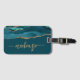 Personalized Signature Teal Blue Gold Agate Bagagebricka