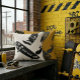 The reverse side transitions into a rugged, industrial "Chainlink" pattern, capturing the raw, high-energy aesthetic of a city skate park. These colors aren't just a style choice—they represent the classic, high-visibility "Black and Yellow" urban vibe that has defined skateboard culture for decades. Perfect for adding an edgy, modern touch to a gamer room, bedroom, or creative studio.