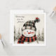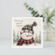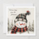 Send warm winter wishes with this adorable personalized Christmas card featuring a cozy snowman in rustic plaid hat and scarf. Soft watercolor trees, gentle snow, and hand-painted textures create a charming farmhouse-style holiday look.