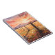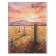 Inspire creativity with this romantic notebook of a sunset landscape, featuring pink, yellow, and blue wildflowers by a vine-covered fence, with purple mountains. Add your name or message for a custom, tranquil touch, perfect for nature lovers.