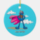 Celebrate the holidays with the world's favorite superhero monster! This charming ceramic ornament features Super Grover in his iconic helmet and pink cape, ready for action in the clouds. The ornament has a bright blue background and is fully customizable with any name printed clearly at the bottom. It makes a wonderful, personalized Christmas gift, stocking stuffer, or special keepsake for any Sesame Street fan!