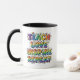 Start the school day on a bright note with a morning coffee essential designed specifically for the world-changers in education. This two-tone mug features a striking rainbow gradient typography that reads "Teach Love Inspire Repeat," accented by whimsical hand-drawn doodles like apples, pencils, and lightbulbs. The vibrant artwork is perfectly complemented by a stylish black handle and interior, while the back provides a dedicated space for a personalized teacher name in a bold, clean red font. This customization ensures a thoughtful touch that will make any educator feel truly seen and appreciated.