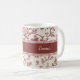 Add a touch of timeless, rustic elegance to your home with this beautiful personalized ceramic mug. The design features a delicate botanical pattern inspired by classic Toile de Jouy fabric in soft brown and taupe tones. The central band provides a stylish space for complete customization. You can easily personalize this mug with a name, a special date, or a meaningful message, making it a wonderful housewarming, anniversary, or wedding gift.