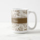Add a touch of timeless, rustic elegance to your home with this beautiful personalized ceramic mug. The design features a delicate botanical pattern inspired by classic Toile de Jouy fabric in soft brown and taupe tones. The central band provides a stylish space for complete customization. You can easily personalize this mug with a name, a special date, or a meaningful message, making it a wonderful housewarming, anniversary, or wedding gift.