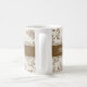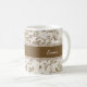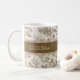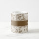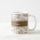 Add a touch of timeless, rustic elegance to your home with this beautiful personalized ceramic mug. The design features a delicate botanical pattern inspired by classic Toile de Jouy fabric in soft brown and taupe tones. The central band provides a stylish space for complete customization. You can easily personalize this mug with a name, a special date, or a meaningful message, making it a wonderful housewarming, anniversary, or wedding gift.