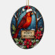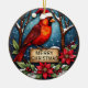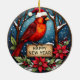 Why settle for one greeting when you can have two? This stunning double-sided ceramic ornament is the ultimate keepsake for the entire holiday season, featuring a vibrant cardinal in a snowy scene with a personalized sign on both the front and back!