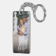 Carry your favorite romantic memory everywhere you go this Valentine's Day. This custom photo keychain features a beautiful, minimalist white "love" script in a modern handwritten font, layered over your own special moment.