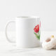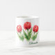 Elegant watercolor illustration of red tulips with soft green leaves, inspired by nature and floral beauty. A delicate personalized name adds a unique and meaningful touch, making this mug perfect for everyday use or as a thoughtful gift.