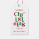 A festive gift tag to personalize for the Christmas holiday season, this design has bright red and green retro stylish text arranged vertically spelling out Merry Christmas. Personalize the text template with your name for a custom attractive gift tag.