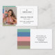 Ett platt affärskort i vitt med varma, nedsänkta färg-färgrutor, ditt foto och din logotyp för en färg-analytiker, insida-dekorator, stilist med mera.