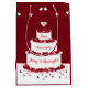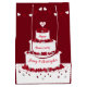 Den personifierade medelgåvan för den röda 40th Rubyårsdagen hänger lös med tårta- och buntingdesign en tre tier.