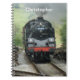 Personifierad anteckningsbok för vintageångatåg med spiral