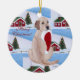 Unik och rolig konst för den Labrador retrieveren målade vid Naomi Ochiai från Japan. Gullig gul Labrador design för jul! Du kan skräddarsy text på båda sidan. Sätt in ditt efternamn för att personifiera prydnaden. :)