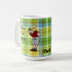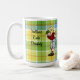 Personifierad gul lab mugg för pappaplädkaffe. Gul design för tecknad för pappa för Labrador Retriever. En stilig pappa bär hans gul lab på hans baksida. Mycket gulligt. Den nyckfulla och roliga tecknaden för den Labrador retrieveren skapade vid Naomi Ochiai.