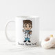 Den gulliga roliga doktorn ha på sig en doktor labblaget över hans skurar, stetoskopet runt om hans nacke, och bära en clipboard i hans räcka, ordna till för att hjälpa med ett stiligt leende! Image är på båda sidor av muggen.