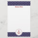 Denna brevpapper presenterar ett marockanskt Quatrefoil mönster i marinblått och vit. Ett rött ankrar ger ett nautiskt motiv till designen. Personifiera denna brevpapper med ett namn.