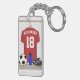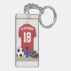 En ny ny version av GiftsBonanzas den unika designen för sportar för jersey för fotbollfotboll som presenterar en röd och vitfotbolljersey som hänger i en omklädningsrum med låsbara skåp med en fotbollboll, en vattenflaska och fotbolldubbar på ta av planet. Fotbolljerseyen har anpassadetext för namn av fotbollspelare, fotbolllagledaren eller fotbollfläkten och numrerar eller åldras.