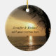 Fira en första helgdag tillsammans eller skapa en personlig souvenir av din bröllopsresa med detta tropiska hav beskådar prydnaden. Skräddarsy eller ta bort texten på denna helgdagprydnad med en tropisk strandsolnedgångplats som inramas av en palmträd.