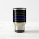 En grafisk travel mug för tunn för grå färgUS för blålinjen symbolisk design för flagga. En underbar gåvaidé för sammankomster, minnes- firanden och minnetillfällen. Personifiera det med din text.