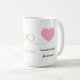 Celebrate love and connection with this elegant “Connected Forever” couple mug. Featuring a delicate infinity line, soft heart accent, and graceful script typography, this design symbolizes an unbreakable bond and timeless togetherness. The minimalist, romantic style makes it perfect for daily coffee or tea moments while adding a meaningful touch to any kitchen. Ideal as a gift for couples, weddings, anniversaries, Valentine’s Day, or engagements, this mug is a beautiful reminder that true connection lasts forever. It is thoughtful, stylish, and heartfelt.