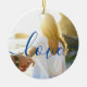 Skapa ditt eget personlig-foto och skripttext jul Ceramic Ornament med den här eleganten, klassiskt blått, modernt och enkelt minimalistiskt. Lägg bara till foton och text. Gör din egen fotokollage keepsaké-perfekt som anpassningsbar för att visa kärlek. Färg, vilket teckensnitt som helst, inget minimum.