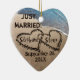 Fysiska personer: Den här designens prydnadsform finns nu i akryl. Lägg enkelt till egna namn eller text (exempel säger: "Ny gifta" med namn av bruden och brudgummen i hjärtat och datumet) för att anpassa denna vackra, populära hjärtform med ett originalfoto av två hjärtan i sand längs den blå oceanen vatten för att beteckna kärlek och romantik. Underbart koncept för kärlek, resor, första helgdag jul tillsammans och kommande sommar sparar datumet bröllop. En roligt, söt, personlig och unik keepsaké prydnad till ge för den speciella personen, flickvän eller pojkvän, brud och brudgumm eller något gosfäst par. Denna utformning finns på båda sidor och är tillgänglig även med utformningen på den ena sidan.