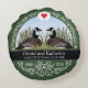 Fira jubileet för det älskade paret som älskar naturen med denna personliga souvenir! Eleganta vita rullar mot en smaragdgrön bakgrund omger ett par kanadagäss som vardera tänker på ett hjärta. Två namn, antal år tillsammans, bröllopsår och innevarande år visas nära mitten och kan anpassas. Perfekt för ett kärleksfullt par som också älskar naturen.