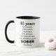 40 År Nyktra Mugg – En underbar skräddarsydd present för årsdagar eller milstolpar av nykterhet. Fira långvarig återhämtning. Denna moderna mugg, anpassad med ett namn, är en symbol för engagemang och hårt arbete. Det är en meningsfull souvenir för att fira sponsors, vänners eller nära och kära nykterhetsresa. Denna mugg för stöd vid återhämtning från beroende är en inspirerande symbol för en ren och nykter livsstil och perfekt för AA-årsdagar och dagliga påminnelser om styrka.