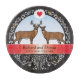 Fira bröllop-jubileet av ditt favoritvänliga par med den här anpassningsbarna. Vita grenar och fåglar på en svart och röd bakgrund omger ett par vita hjortar som var och en tänker på ett hjärta. Två namn, flera år tillsammans, bröllop år och innevarande år, är nära centrum och kan vara personlig. Perfekt för ett kärlekspar som kärlek också är utomhus.