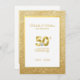 Eleganta, men moderna inbjudningskort till 50-årsjubileet (50 år). Falskt guld folie / glitter med stor 50 med falskt diamant hjärta i mitten. Anpassa dessa bröllopsjubileumskort med din information. Perfekt för förnyelse av vigsel. Lätt att redigera. Se matchande samling; klistermärken, servetter, etiketter etc